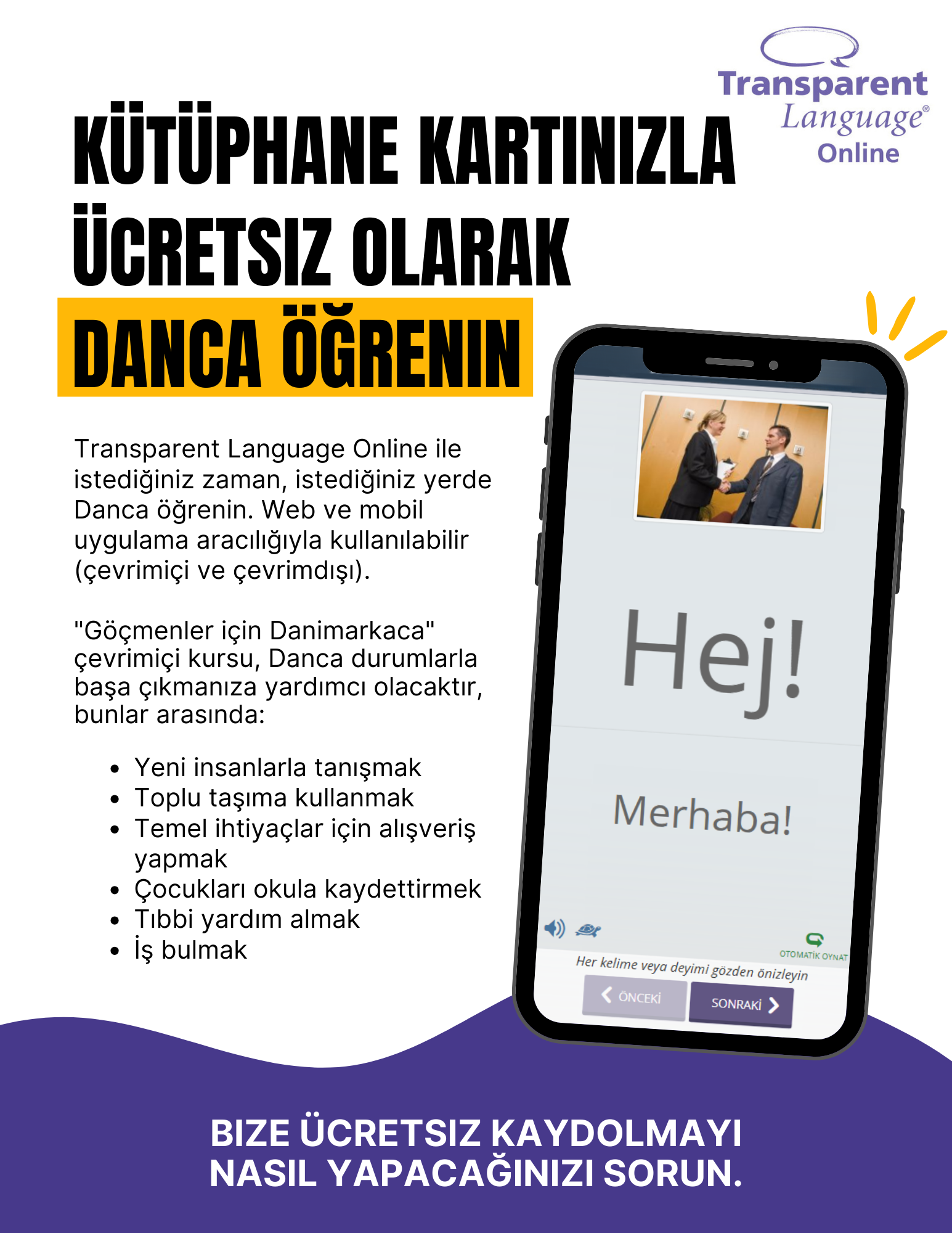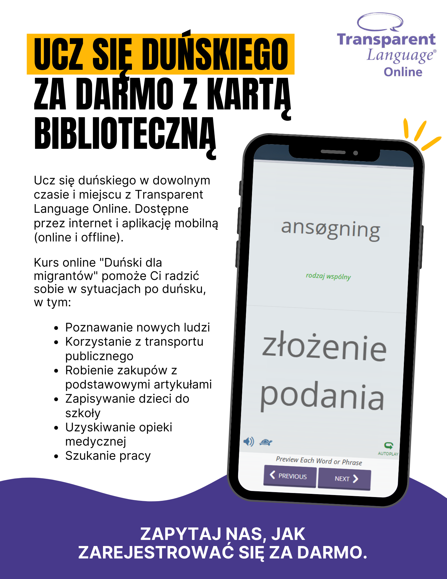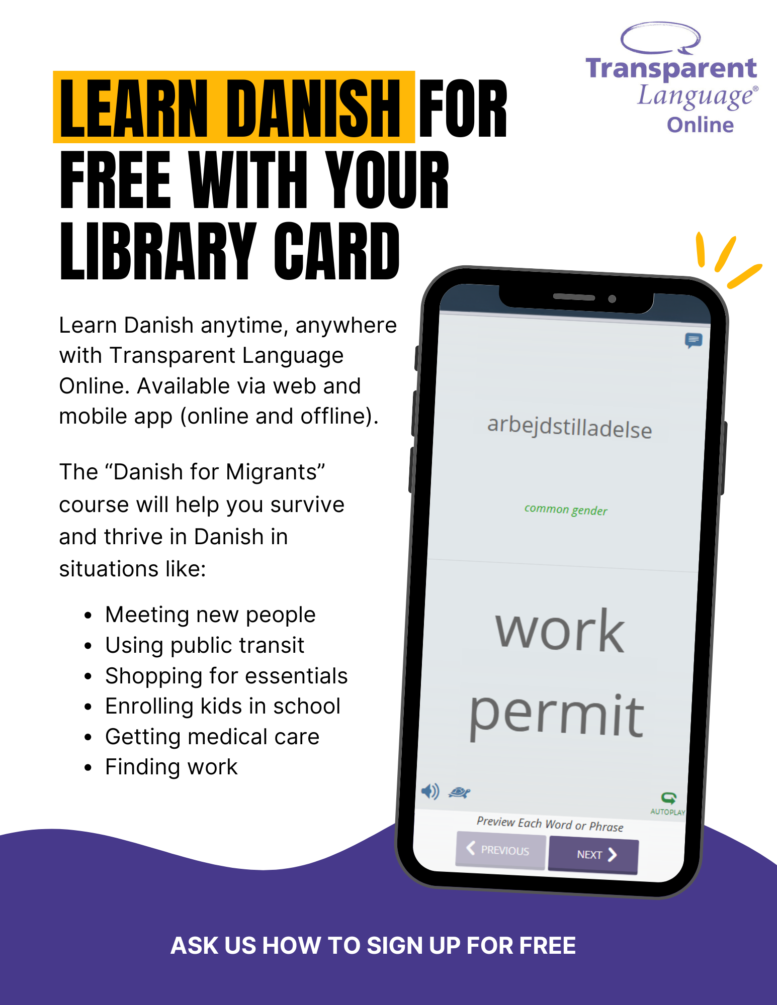 Promote the "Danish for Migrants" course for speakers of 8 languages.