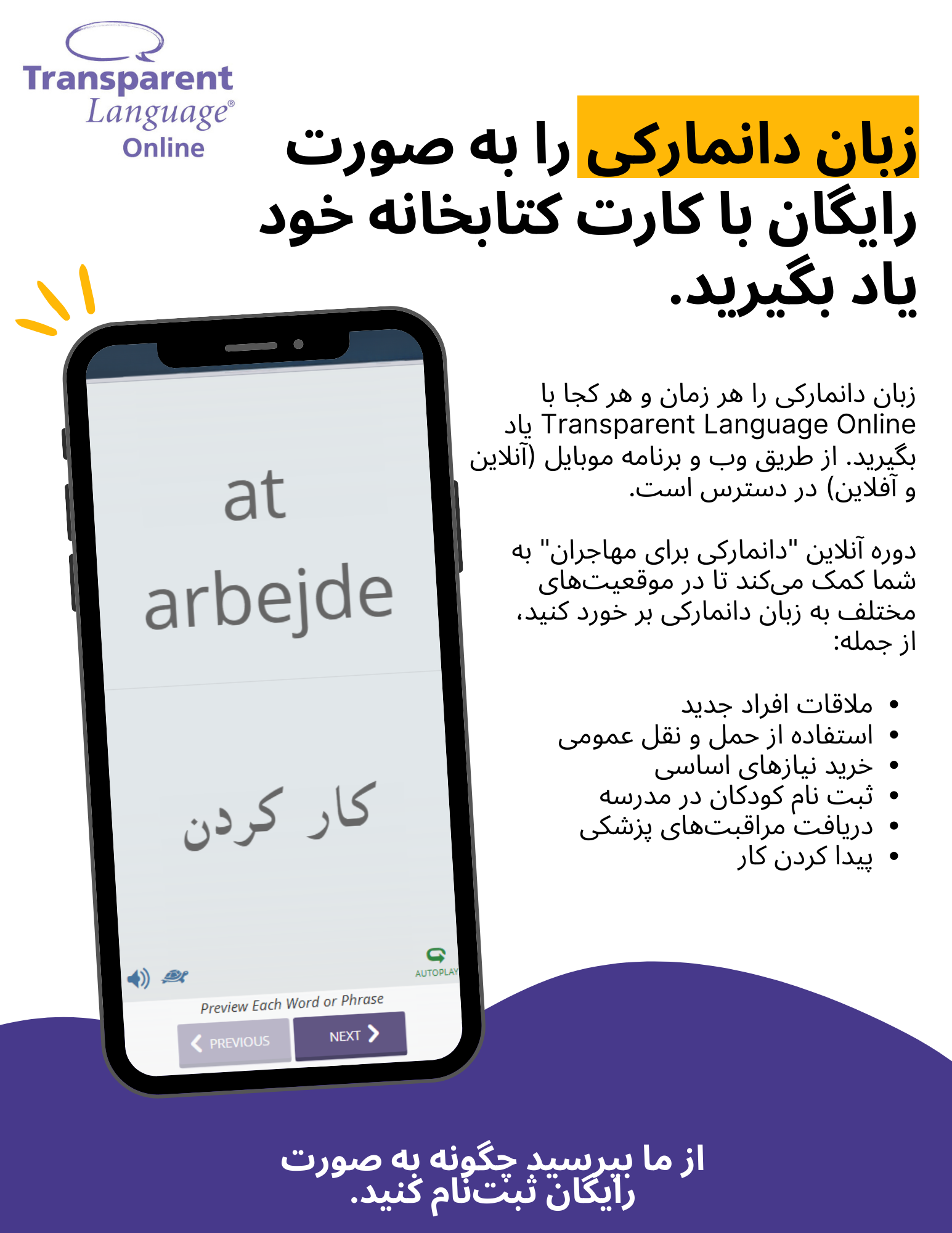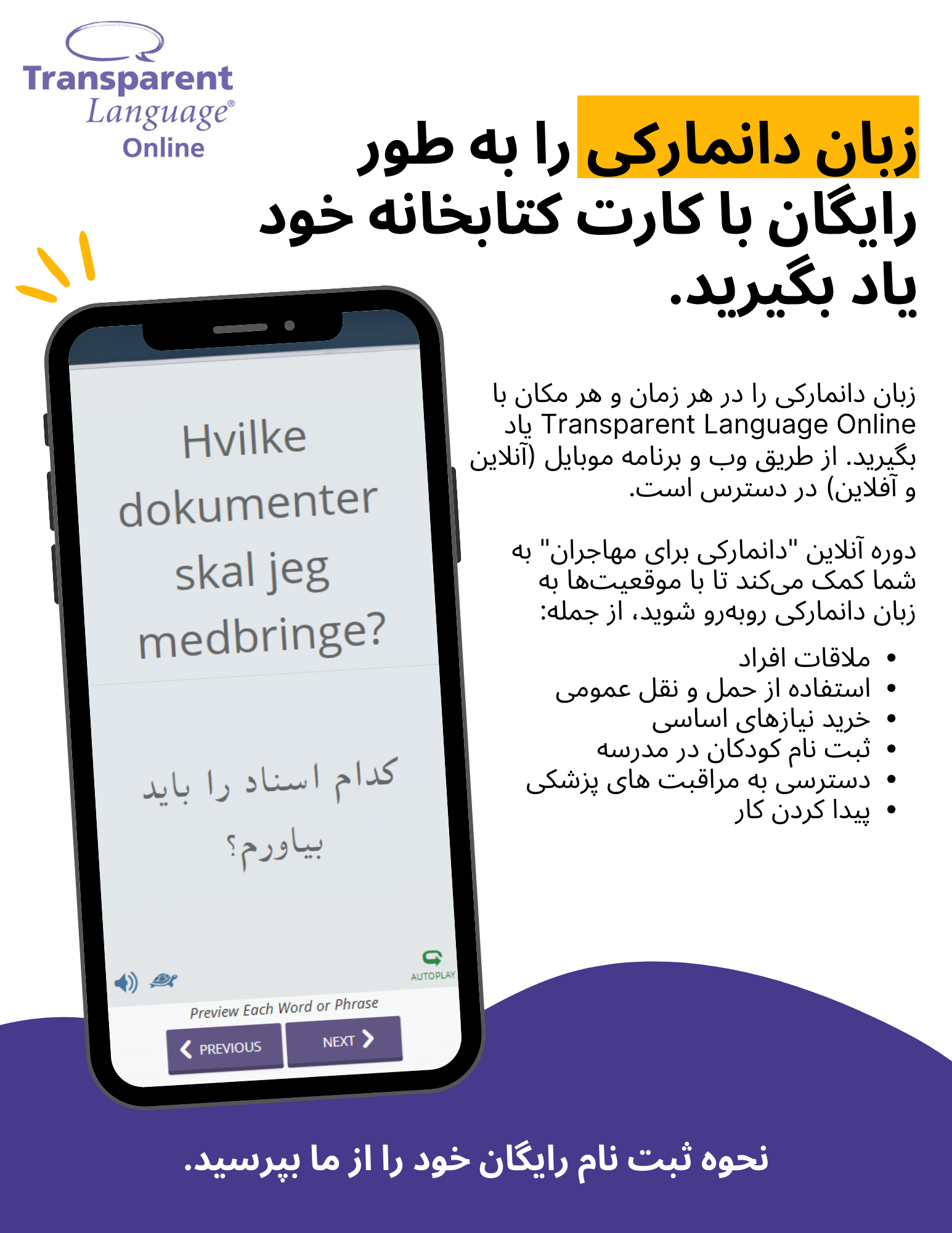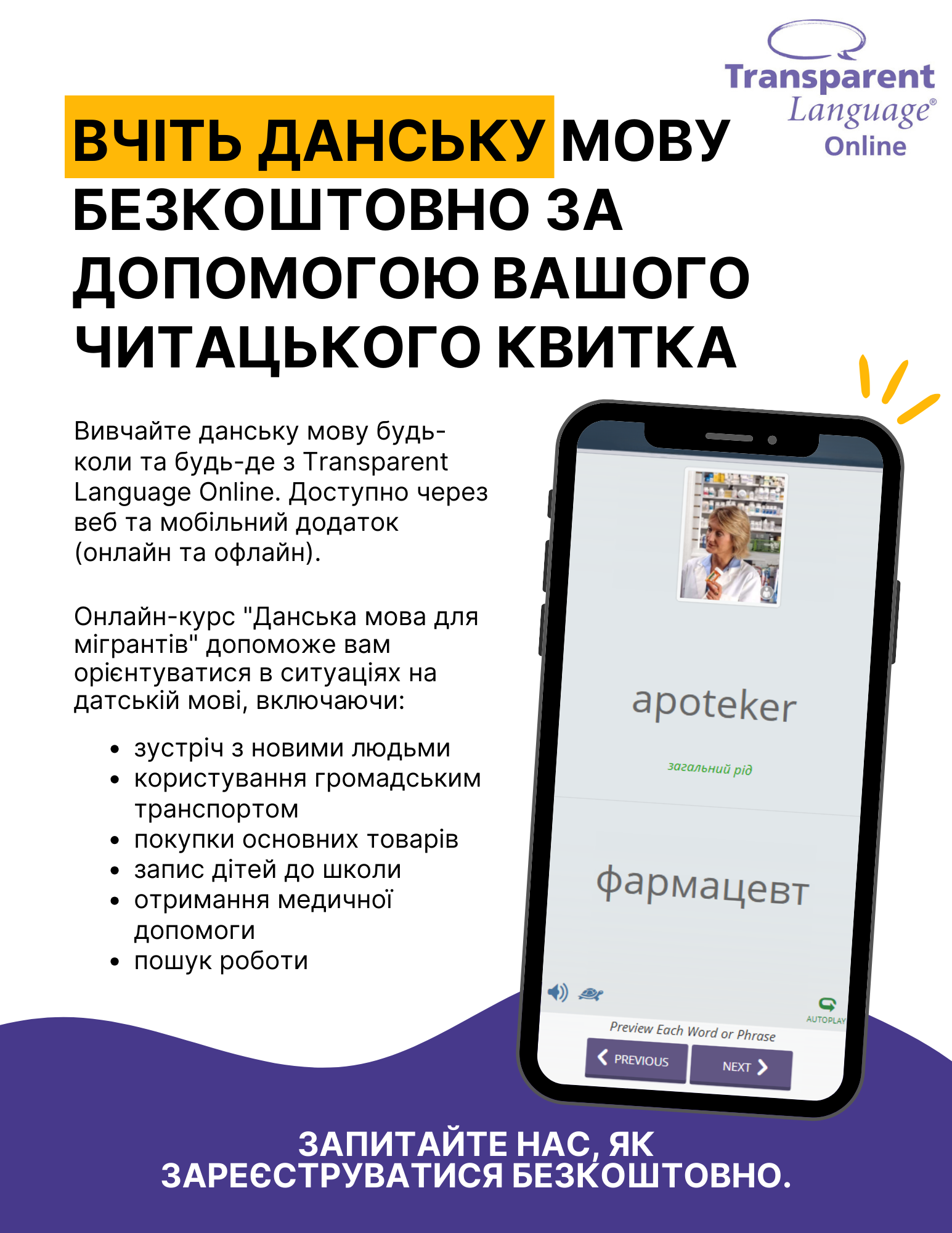 Promote the "Danish for Migrants" course for speakers of 8 languages.