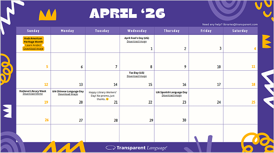 Use this for weekly ideas to promote Transparent Language Online on relevant holidays in April 2026.
