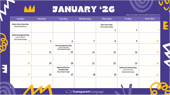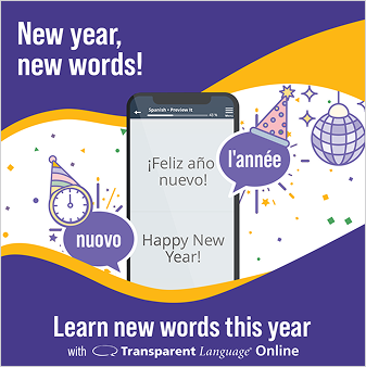 Learn 140+ languages free with your library card using Transparent Language Online. [URL for library’s sign-up page]